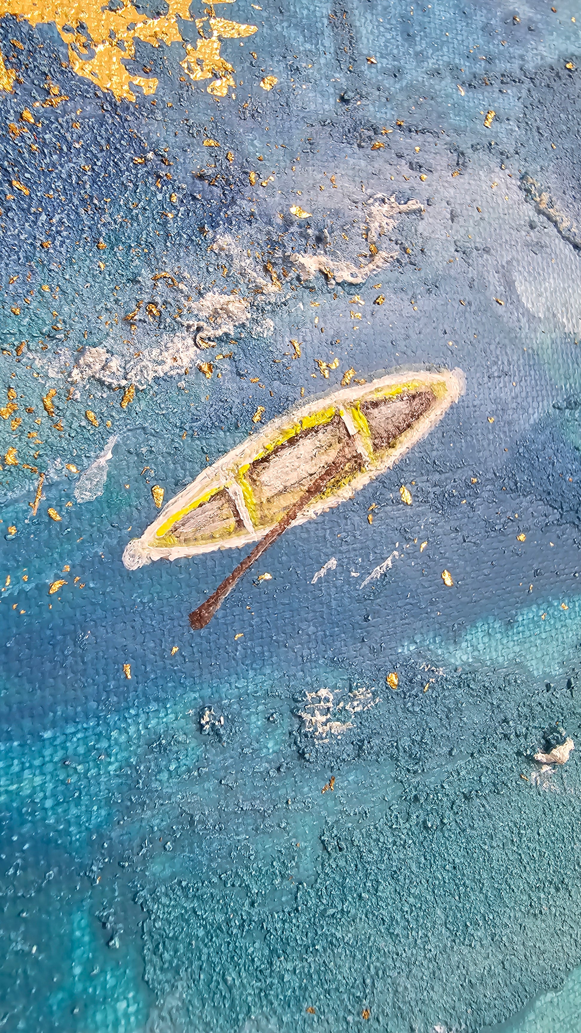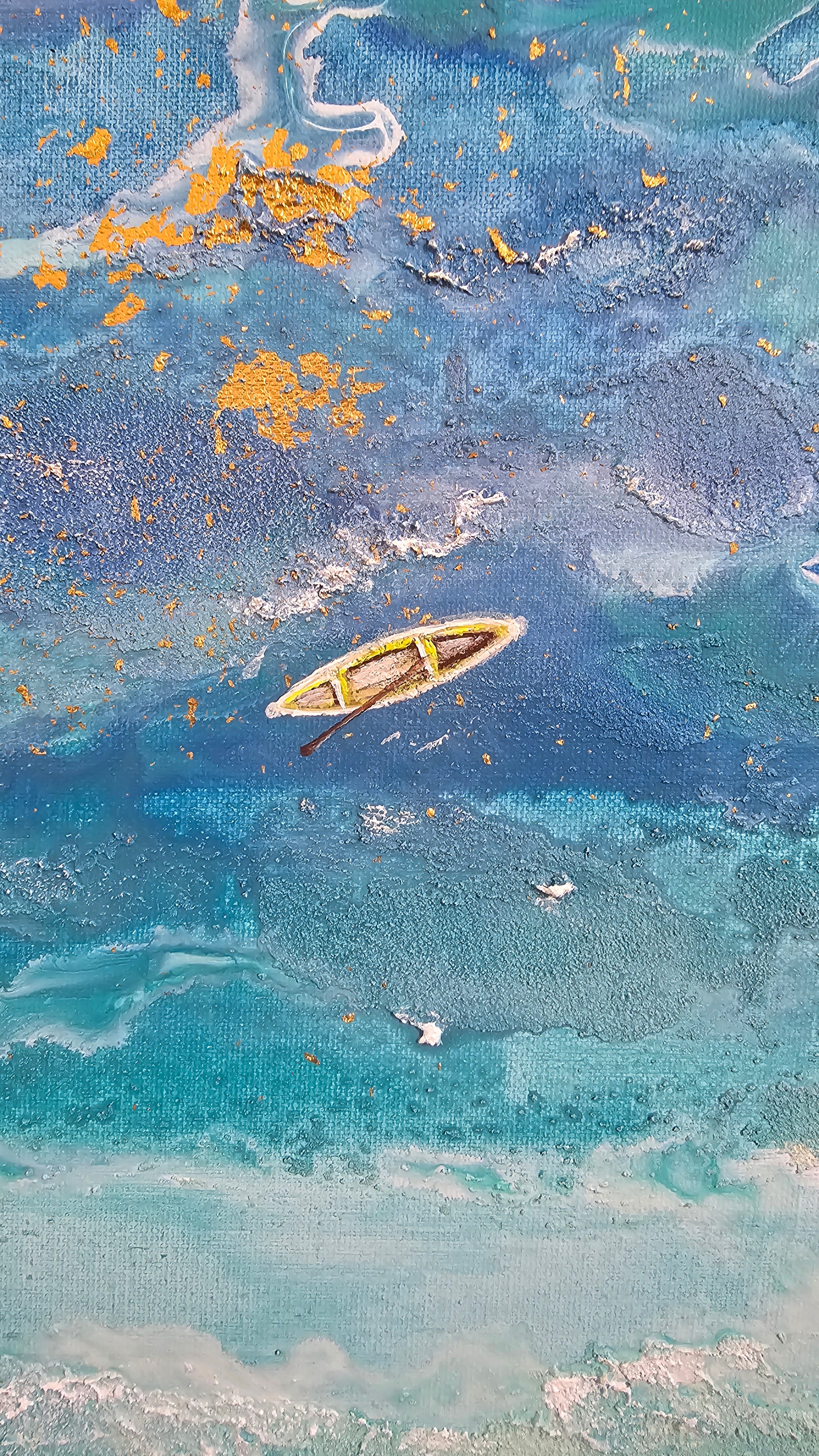 Técnica mista sobre tela., com detalhes em folha de ouro.